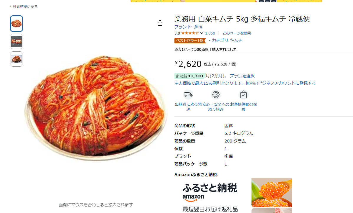 현재 아마존에서 베스트로 팔리는 김치가 이건데