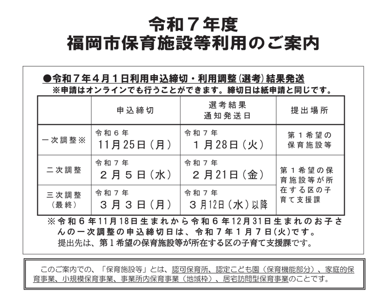 福岡市 令和7年度福岡市保育施設等利用のご案内