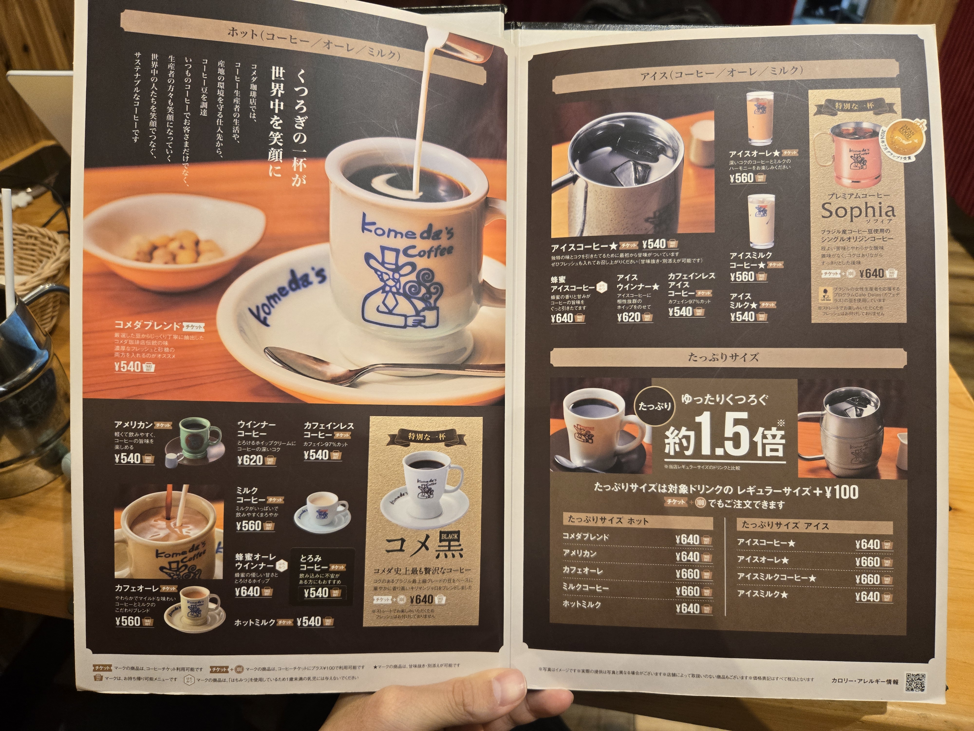 코메다 커피의 메뉴들인데