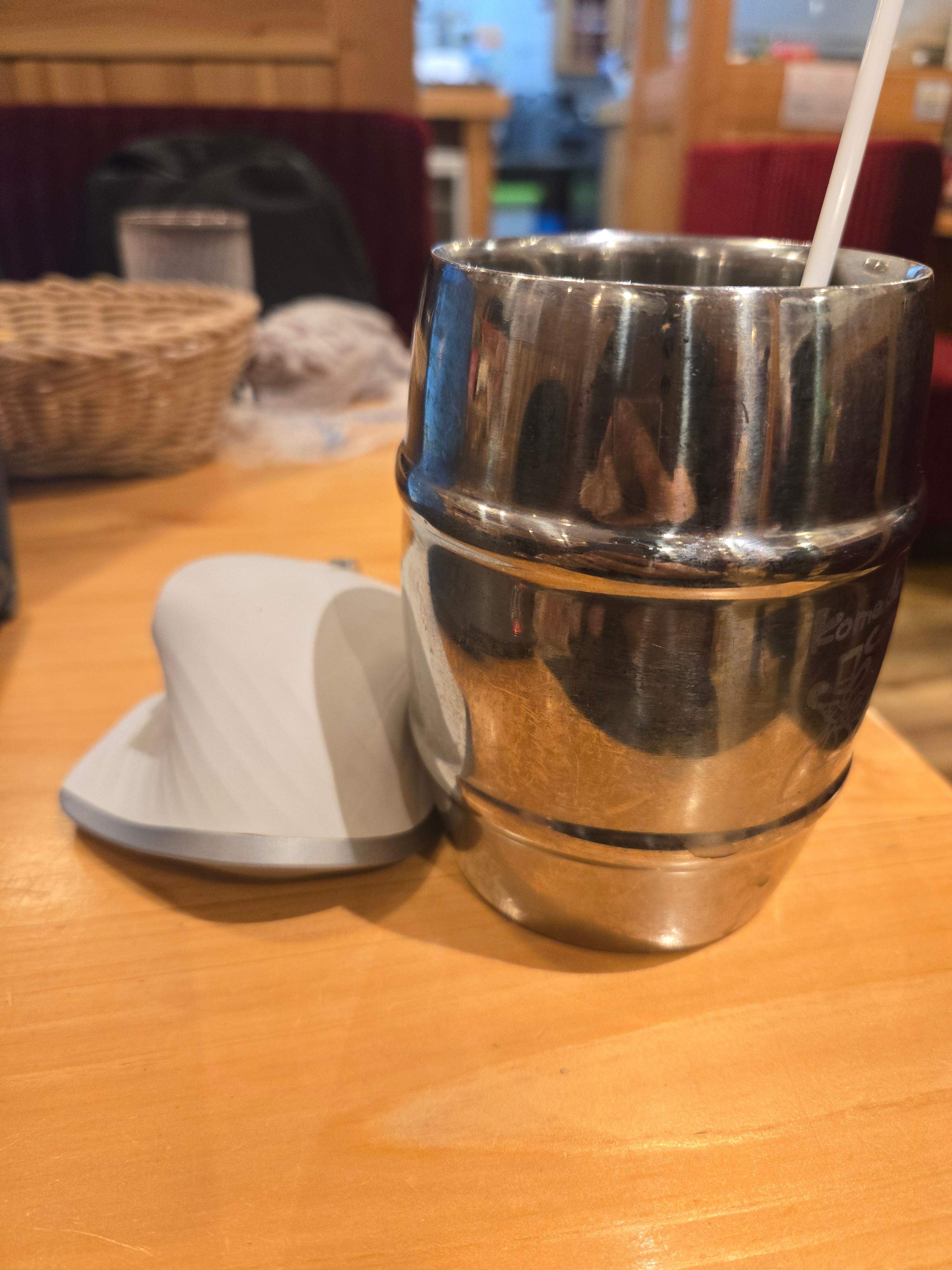 성인 남자 손만한 마우스보다 큰 커피잔에 커피를 가득 담아서 준다