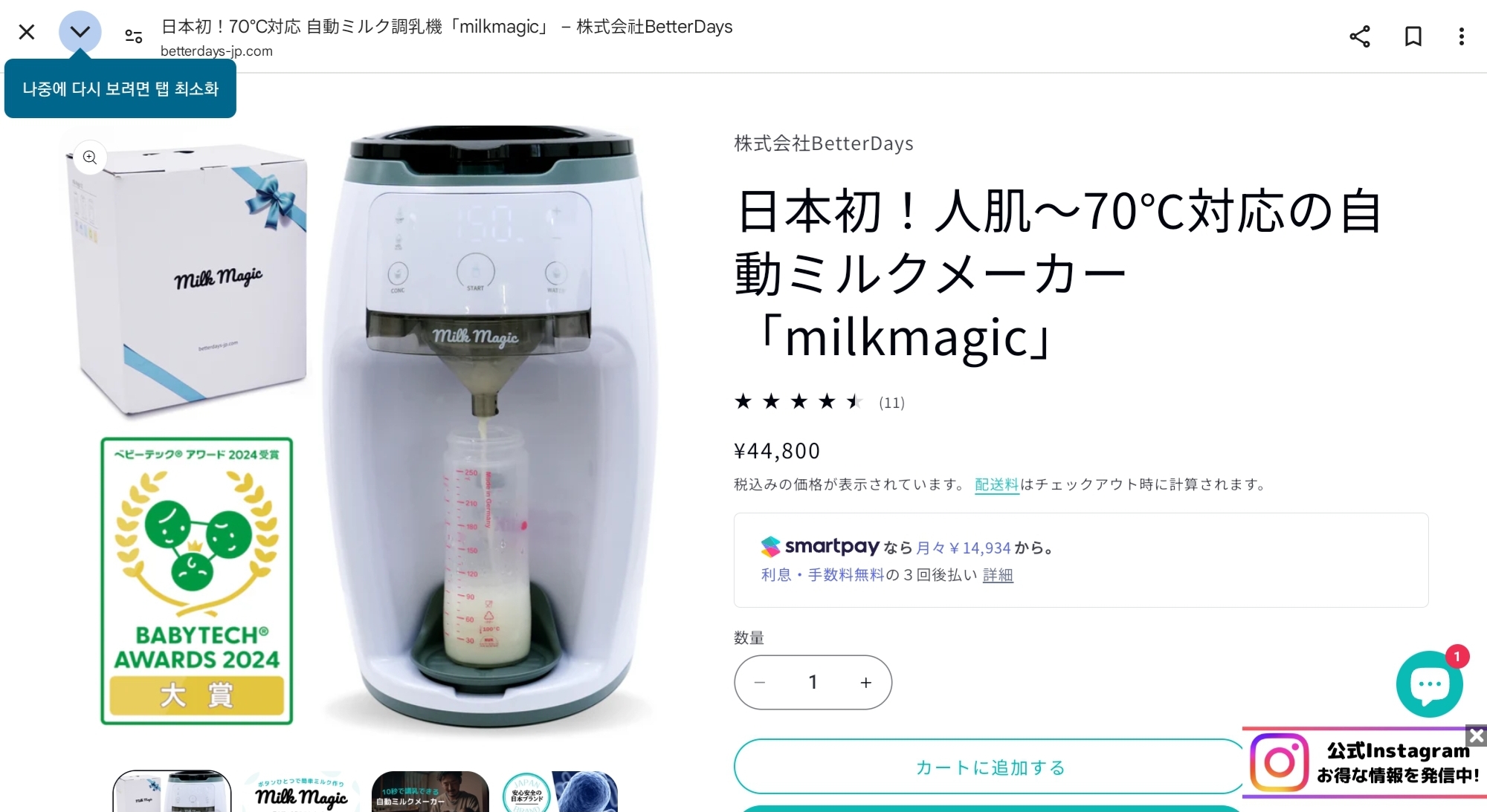 아직 리뷰를 자세히 보지는 않았지만 분유제조기에 4만엔을 넘게 쓰는 건 조금 아까웠다