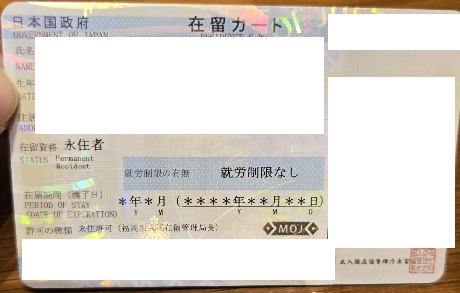 재류유효기간은 무제한이지만 재류카드 자체에는 7년이라는 유효기간이 있었다